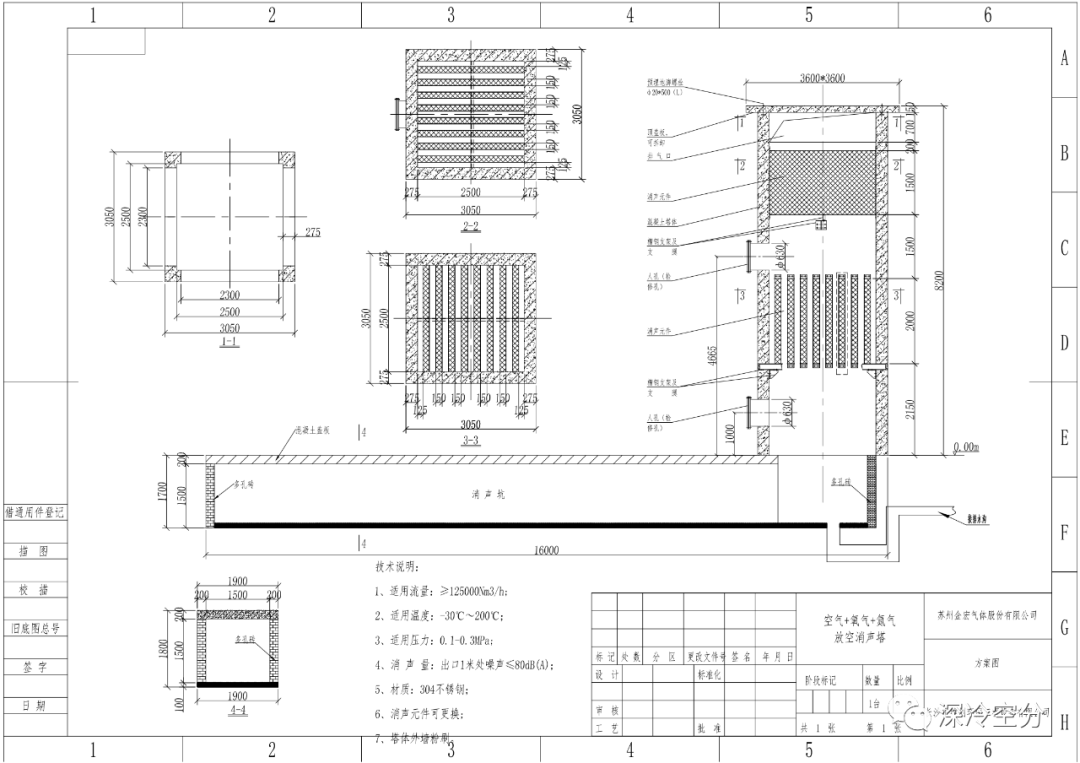 频噪声,做到全频段高消声量),消声量≥50dB(A)。由于放空塔有一定的高度