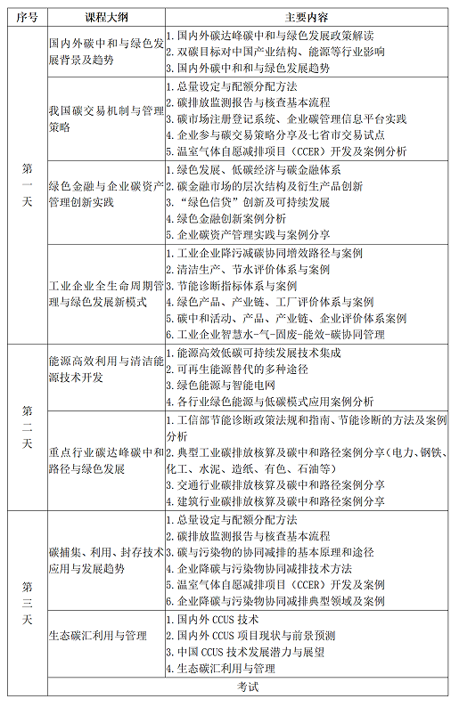 培训内容包括国家政策法规、碳交易机制、绿色金融、八大行业碳核查、碳交易解析、行业碳中和路径、全生命周期协同减污降碳体系等。