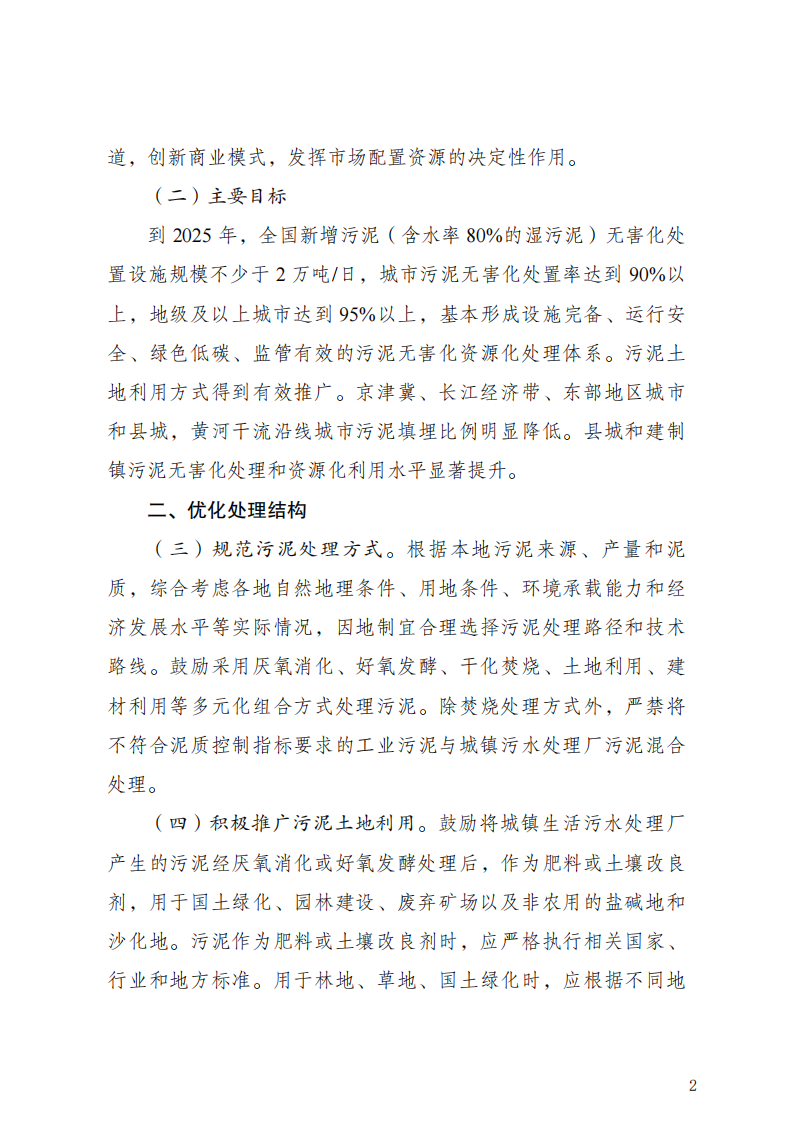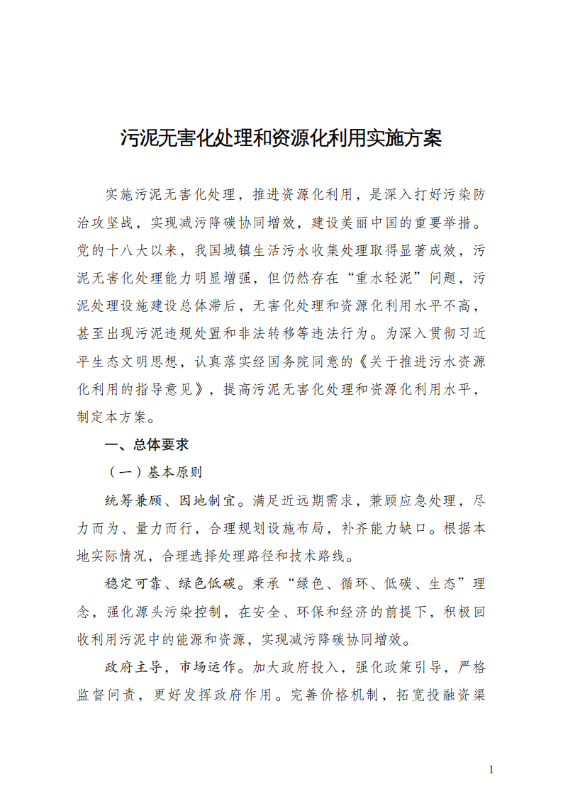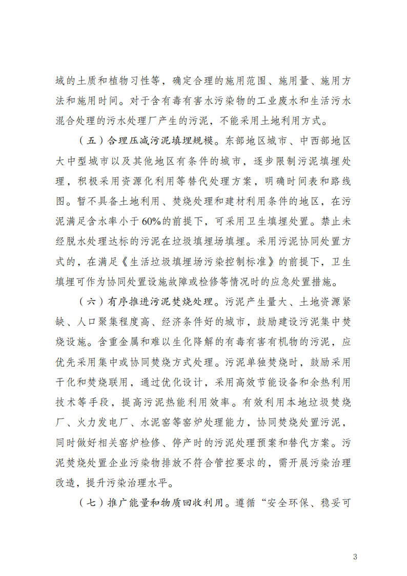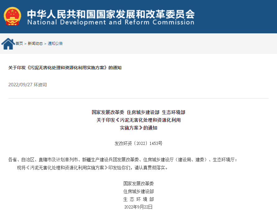 国家发展改革委、住房城乡建设部、 生态环境部印发《污泥无害化处理和资源化利用实施方案》