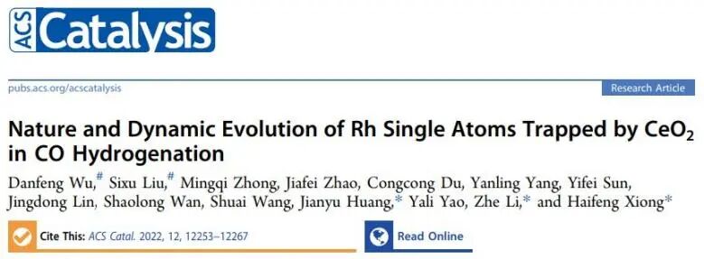 熊海峰&李哲&黄建宇ACS Catalysis: 剖幽析微!探究Rh/CeO在合成气转化反应中的性质和稳定性