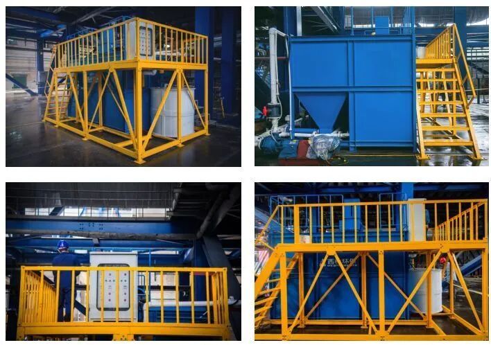 脱硫废水处理系统所加药剂只有一种固态粉料处理药剂DBS。所有污泥均送至压滤机/脱水皮带进行脱水处理。