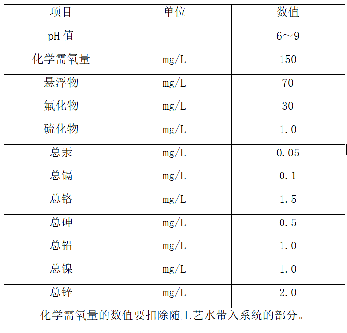 脱硫产生的废水经处理后出水水质达到《火电厂石灰石—石膏湿法脱硫废水水质控制指标》(DL/T 997-2006)中脱硫废水处理系统出口的污染物最高容许排放浓度的要求。废水排放标准的详细指标如下: