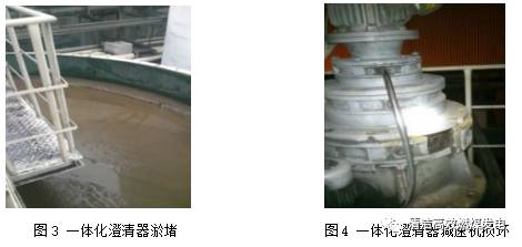 2)排泥困难,澄清器底部的污泥输送泵极易堵塞,无法正常运行。