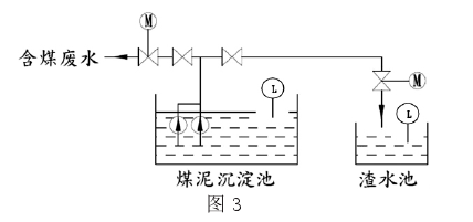 ② 煤泥沉淀池输送泵至渣水池自动:当渣水池液位低时,联锁关闭煤泥沉淀池至含煤废水电动门, 联锁开启煤泥沉淀池至渣水池电动门,并启动输送泵,向渣水池补水,直至渣水池液位恢复正常水位(若煤泥沉淀池液位低则闭锁输送泵启动,并触发报警)。