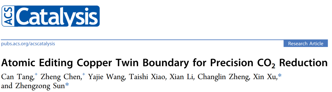 Can Tang,+ Zheng Chen et al . Atomic Editing Copper Twin Boundary for Precision CO2 Reduction. ACS Catal. 2022, 12, 11838−11844