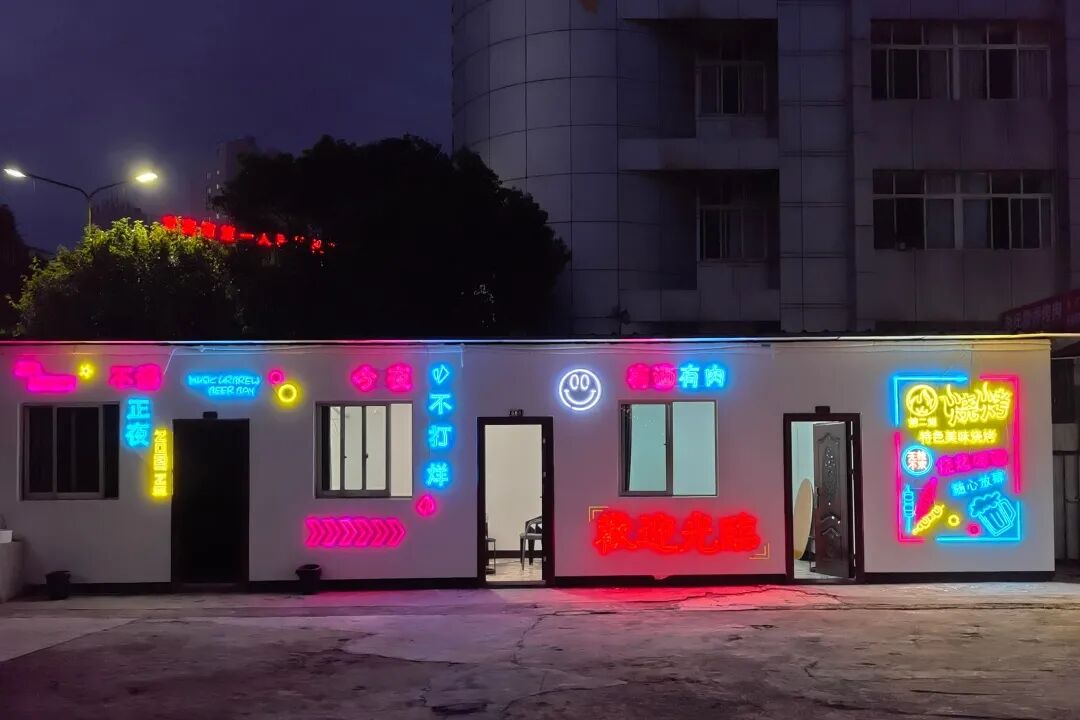 没想到小院子还有两幅面孔呢!晚上在霓虹灯的照耀下用餐,实在是太有氛围啦 ~
