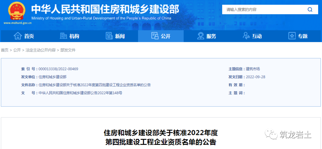 住建部发布《 关于核准2022年度第四批建设工程企业资质名单的公告》, 1家企业成功晋升工程勘察综合资质甲级!