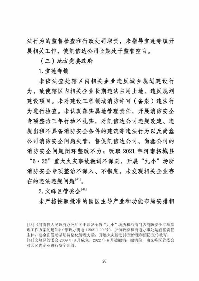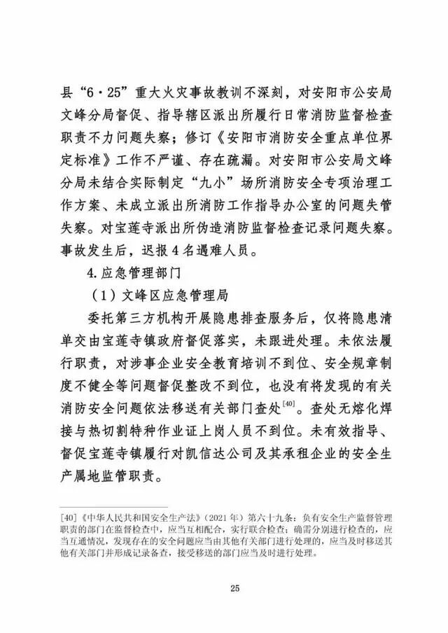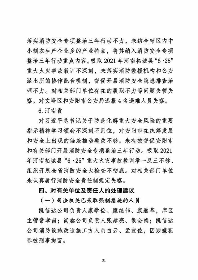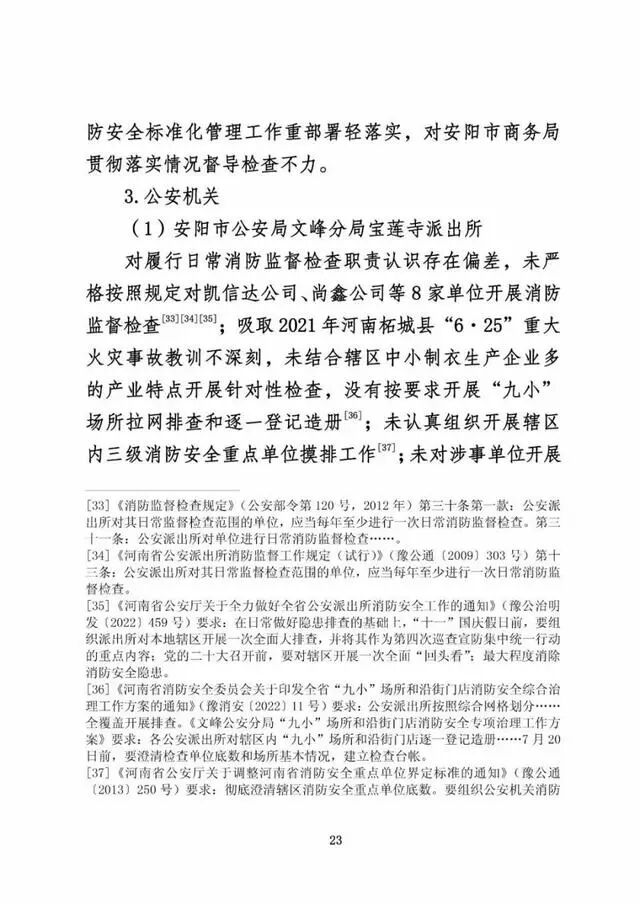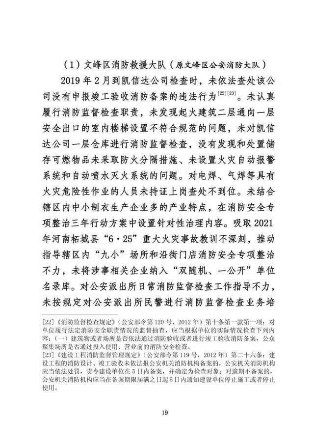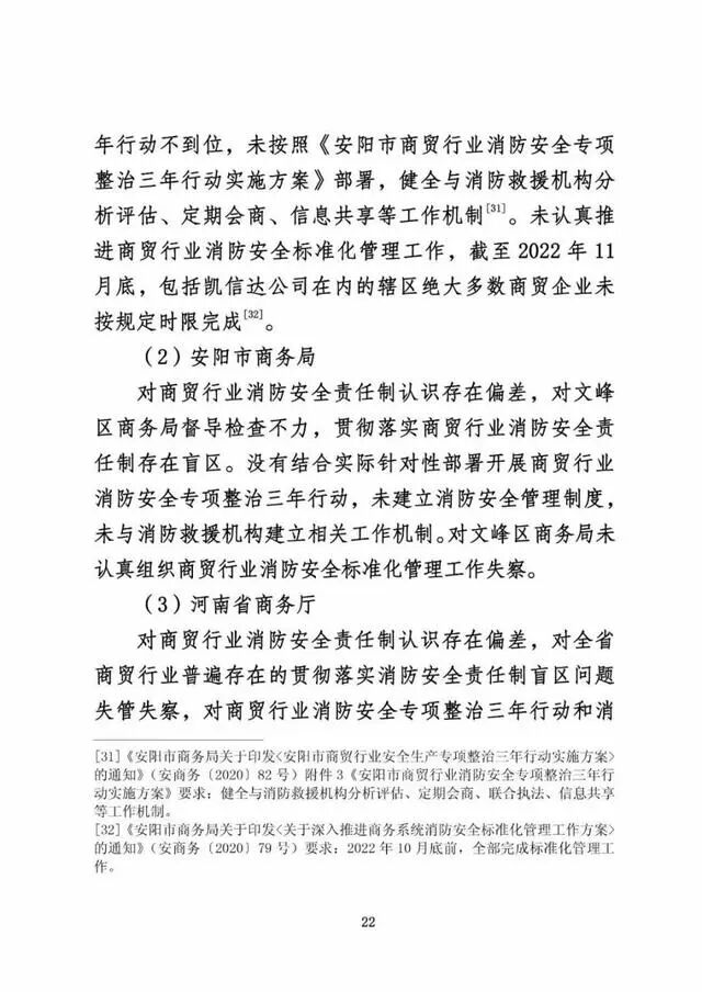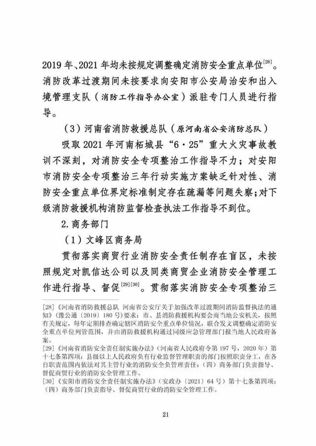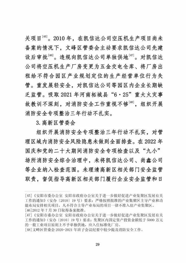 22.李 凯,安阳高新区消防救援大队大队长(2019年5月至2022年3月,先后任原安阳市公安消防支队文峰大队大队长、文峰区消防救援大队大队长) ,给予撤销党内职务、政务撤职处分,由专业技术9级降为10级;
