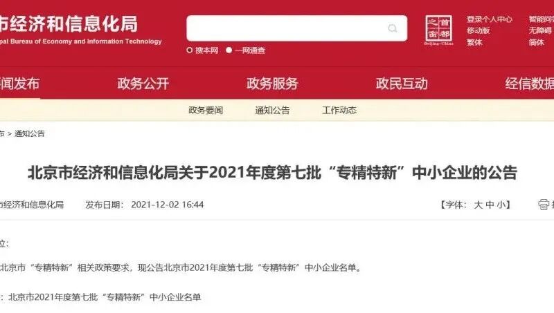 北京市“专精特新”企业--贝士德仪器在行业内率先被授予