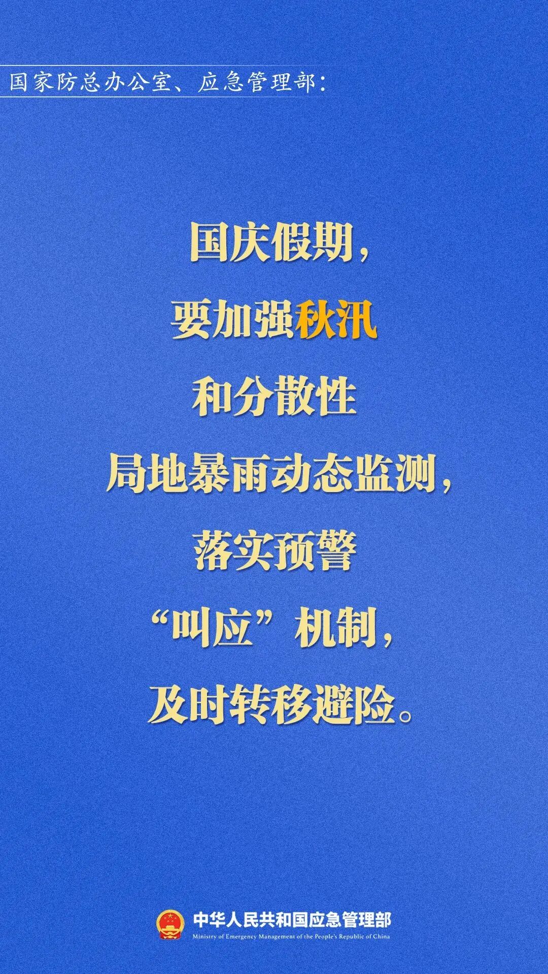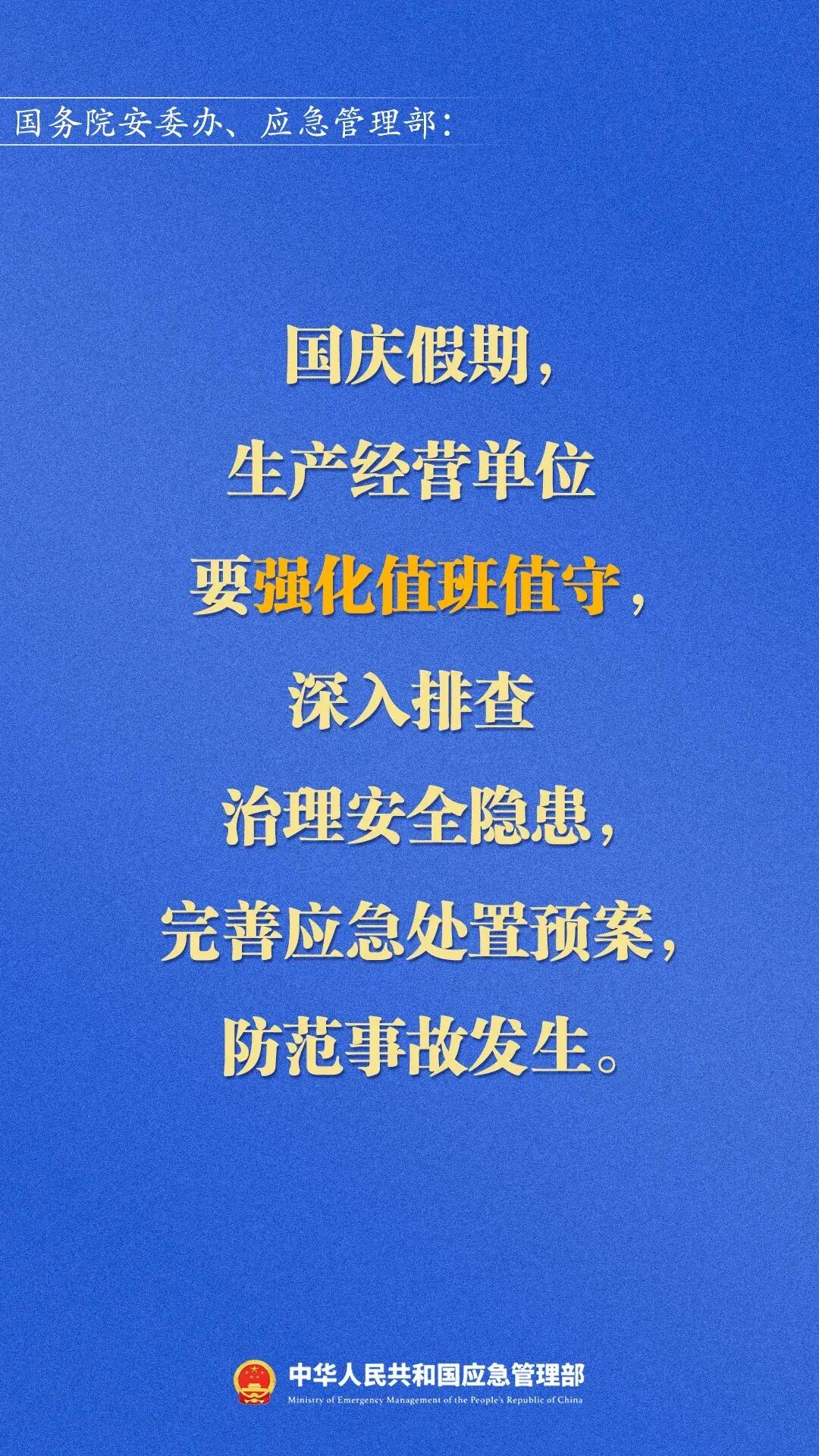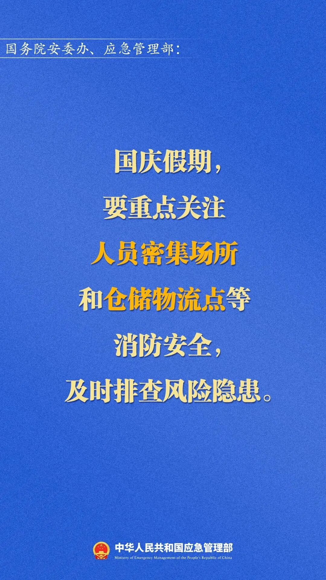 应急管理部调度部署国庆假期安全防范工作
