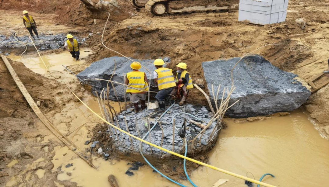 2022年6月20日10时许,新安街道兴东社区华润雪花啤酒总部大厦工地内,诚浩公司班组工人姜正洪(男,49岁,重庆市开县人)在02-02地块基坑内进行桩芯混凝土破除作业。姜正洪使用手持风镐机对已截断的灌注桩桩芯混凝土中间进行二次破碎,作业进行约10分钟后,灌注桩桩芯混凝土突然裂成两半并向两边倾倒。此时,姜正洪头部被钢筋击打,倒地昏迷不起(详见图1)。
