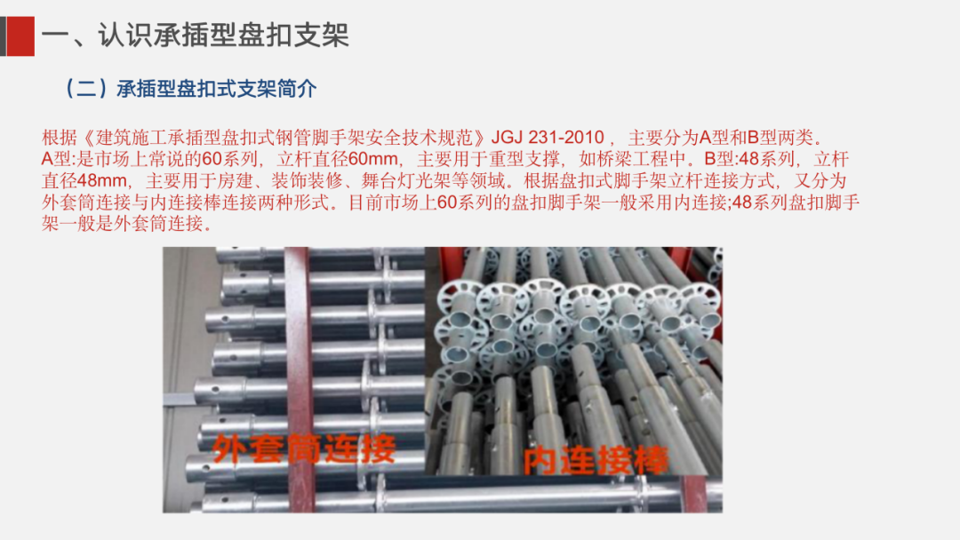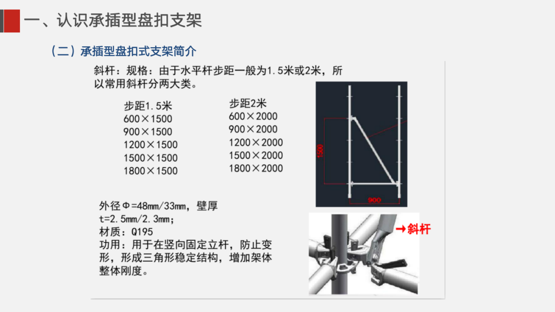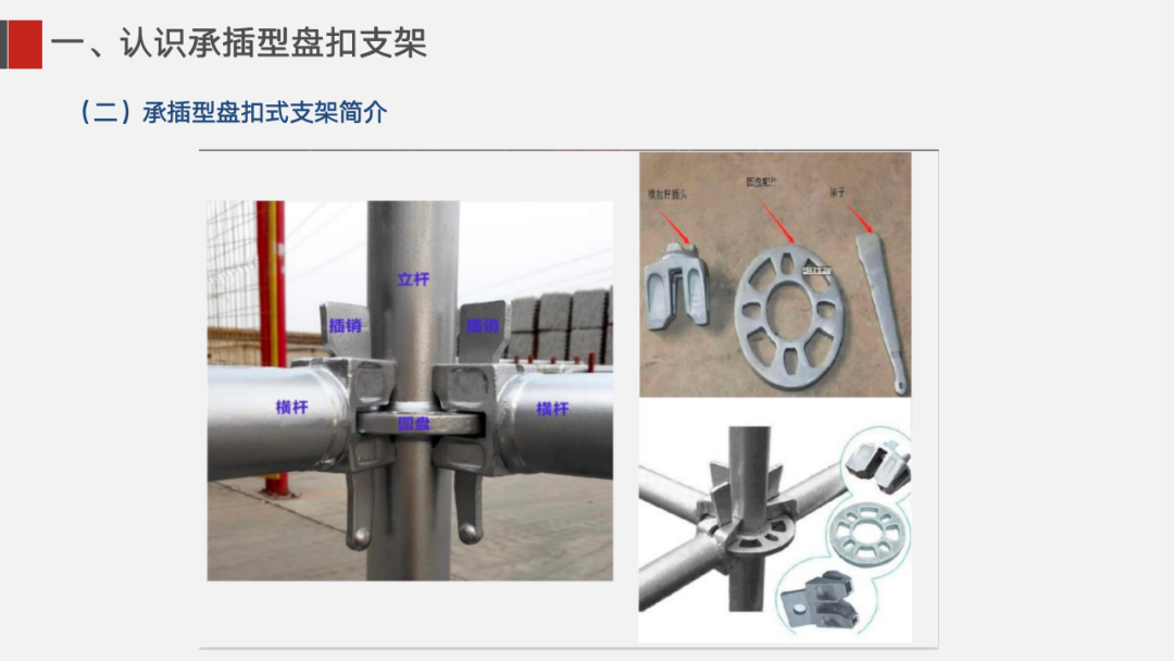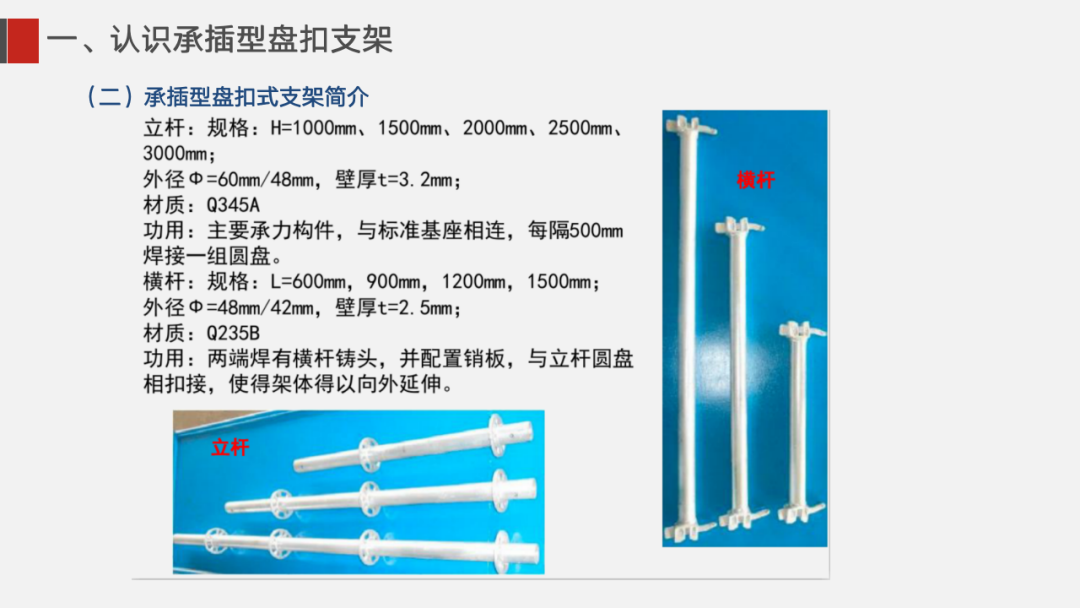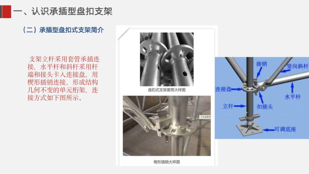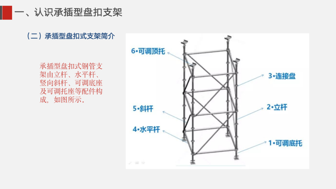 ①盘扣式脚手架单根杆件长度一般不超过2米,相比于传统6米长的普通钢管, 质量更轻,施工人员更容易操控,重心更稳。
