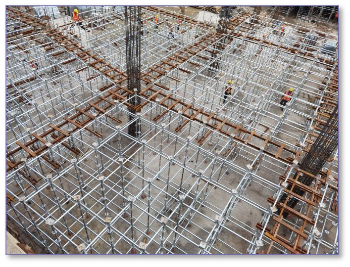 可搭设模板支架、外架、各类操作架、爬梯、安全通道等。 相较于传统采用钢管扣件式的搭设效果 更安全、更美观 。