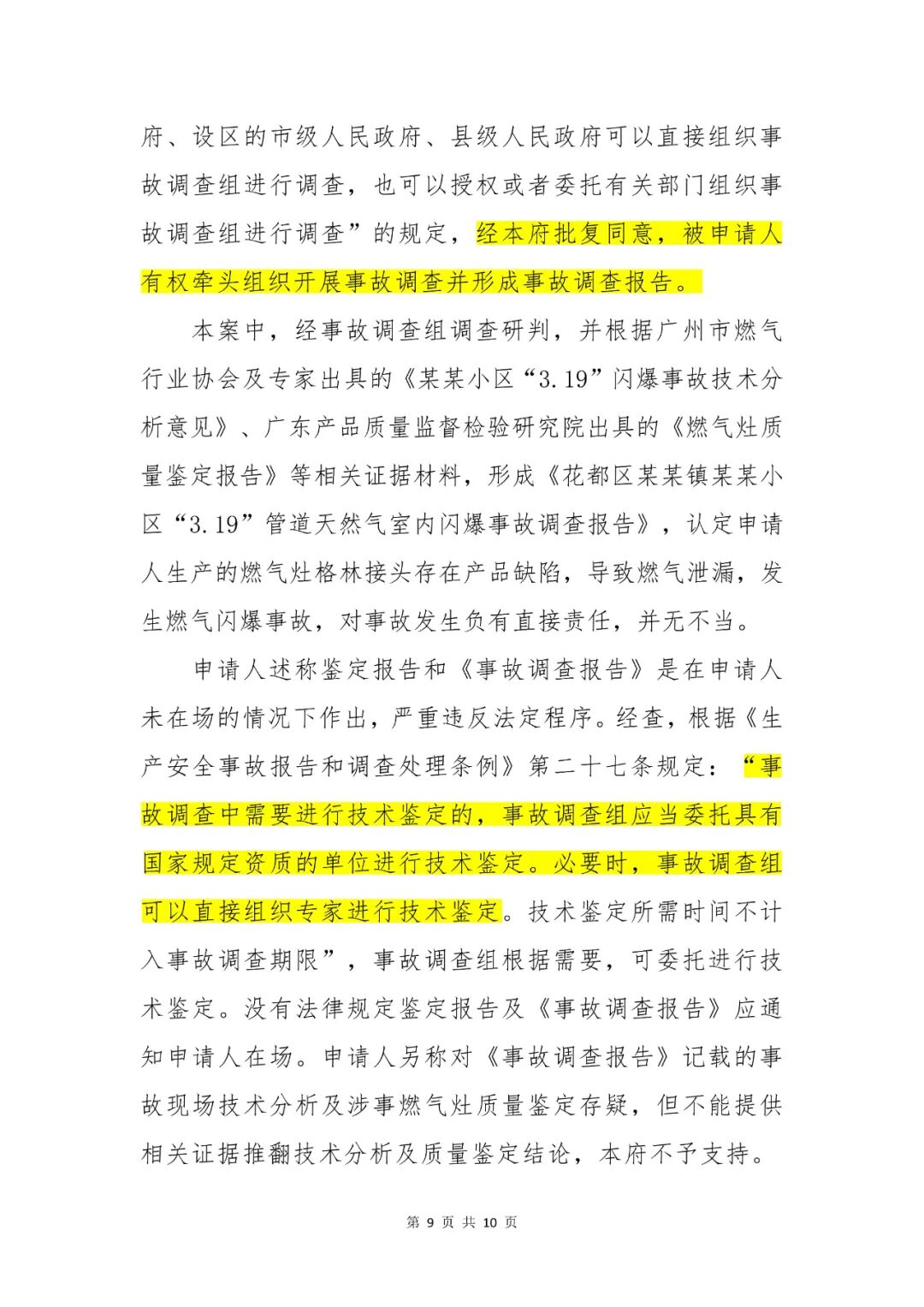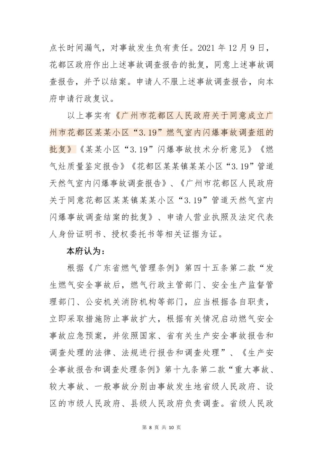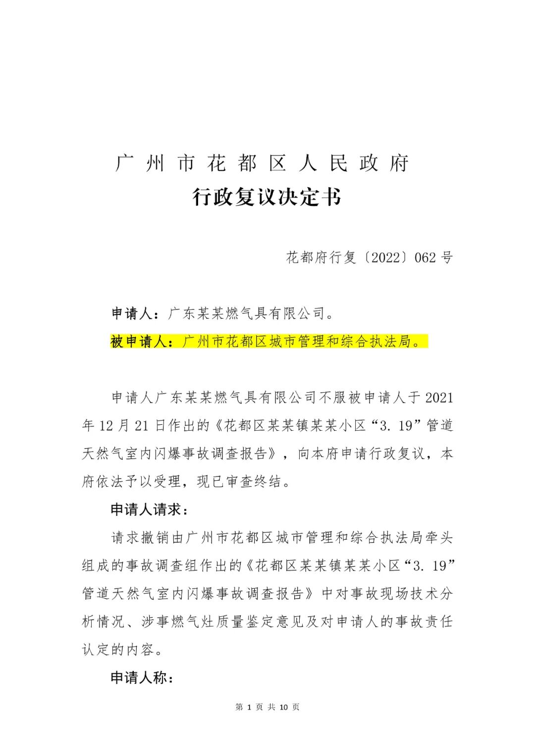 爆燃事故调查报告可否申请行政复议?被申请人是谁?……广州这份复议决定书给出答案