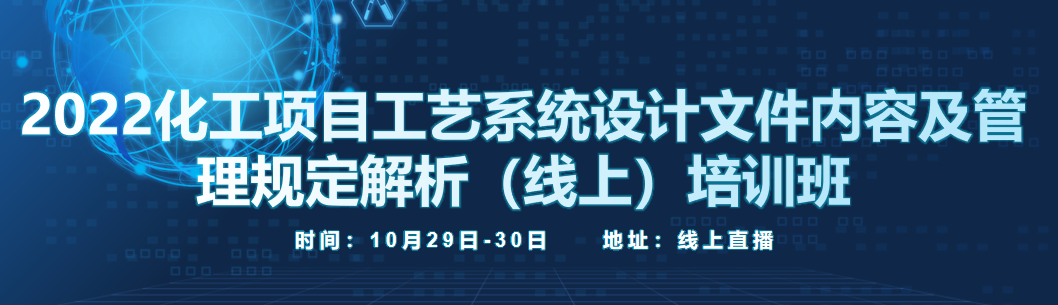 在当前疫情防控特殊时期,以满足各单位专业人员学习、交流及业务拓展的需要,我单位定于2022年10月29日-30日举办 “2022化工项目工艺系统设计文件内容及管理规定解析(线上)培训班” ;