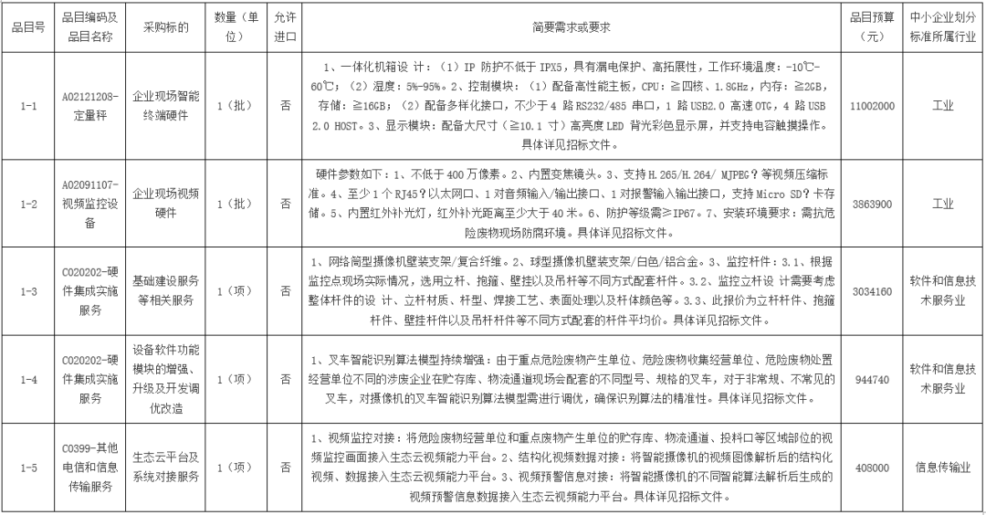 【招标】危废经营单位和重点危废产生单位视频监控和智能化系统服务采购项目