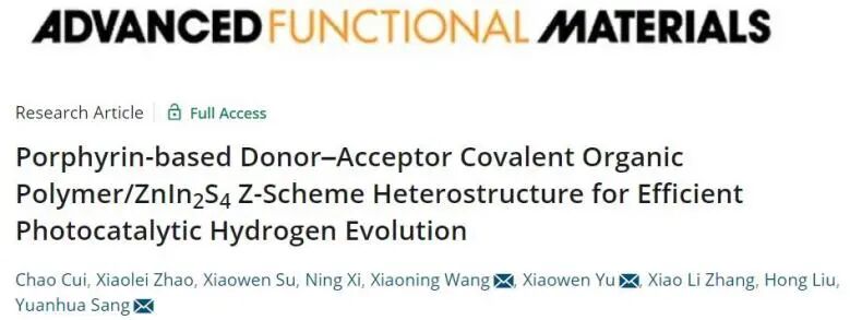 桑元华&于小雯&王晓宁AFM: 引入共价有机聚合物,促进COP-ZIS异质结构高效光催化析氢