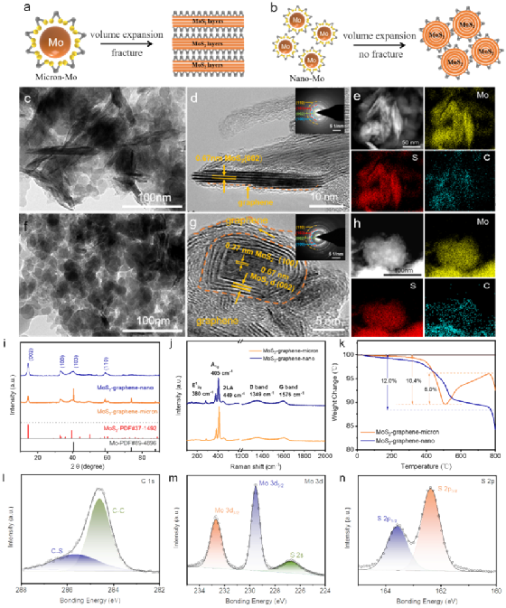 北理工谭国强教授团队Nano Energy:金属热法同步构筑二硫化钼-石墨烯二维层状复合结构材料助力高容量电化学储能