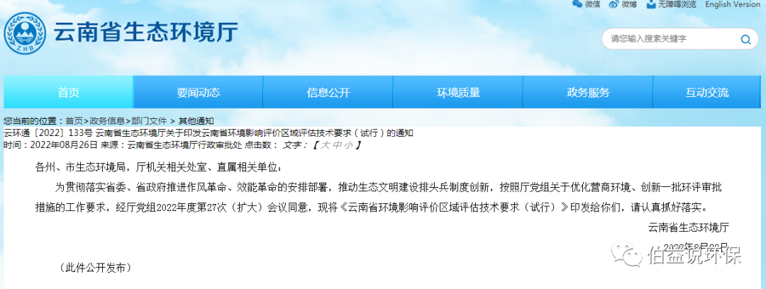 云南省发布《环境影响评价区域评估技术要求(试行)》