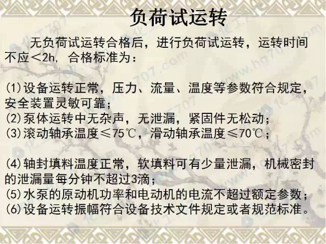 检查水泵的油杯并加油,盘动联轴器,水泵盘车应灵活,无异常现象。