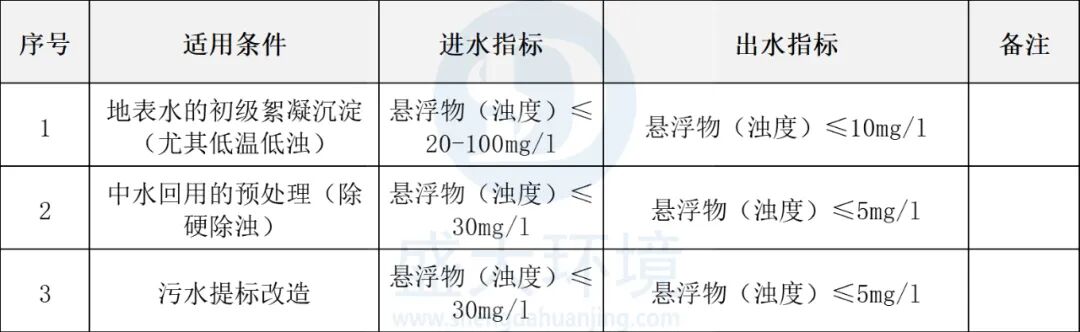 用于地表水的初级絮凝沉淀;生活污水及工业废水的深度处理;中水回用的预处理(除硬除浊);污水提标改造等处理单元。