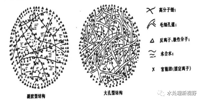它是在干态和湿态的离子交换树脂中都存在的高分子结构中的孔(凝胶孔)和高分子结构之间的孔(毛细孔)。