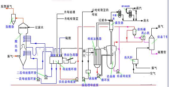 无饱和器法采用酸洗塔代替,最后生成的结晶颗粒大,产品质量好,但其生产设备复杂,成本较高。