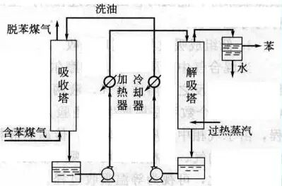 吸油吸收法根据操作压力可分为加压吸收法,常压吸收法和负压吸收法。加压吸收法压力要求800-1200kPa,此法可强化吸收过程,但增大了功耗,适合远距离工艺;常压吸收法要求的压力稍大于大气压,是各国普遍采用的方法;负压吸收法用于全负压煤气净化系统。
