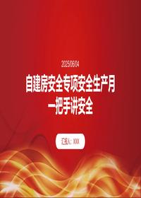 2025/06/04自建房安全专项安全生产月一把手讲安全汇报人:XXXCONTENTS目录01自建房安全的战略意义与极端风险02构建“四级穿透式”责任体系03聚焦三大杀手的雷霆防控04智慧强安:构建数字房安大脑05应急能力筑基:锻造黄金救援战力06培育扎根基层的安全文化CONTENTS目录07安全生产月雷霆行动08行动号召与总结自建房安全的战略意义与极端风险01安居工程的最后防线乡村振兴的根基保障农村自建房占全国住房存量的68%,是乡村振兴的重要根基。自建房的安全与否,直接影响着农村居民的生活质量和农村...