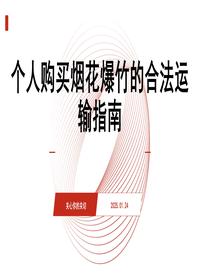 关心你的关切2025.01.24个人购买烟花爆竹的合法运输指南Content目录烟花爆竹的合法运输方式01根据现行法规,私家车不允许运输烟花爆竹,即使是春节期间少量携带也不被许可。即便是在燃放后剩余烟花想要自行背走,这也属于非法运输行为。因此,个人购买烟花爆竹后,必须寻找合法的运输方式。私家车运输限制如果个人购买了烟花爆竹,可以考虑与合法运输单位合作,确保运输过程的合规性。这些单位需要具备危险货物运输运营资质,运输车辆要符合相关安全标准并具备道路运输证明,驾驶员和押运员也需要有从事危险货物运输的资格证明。...